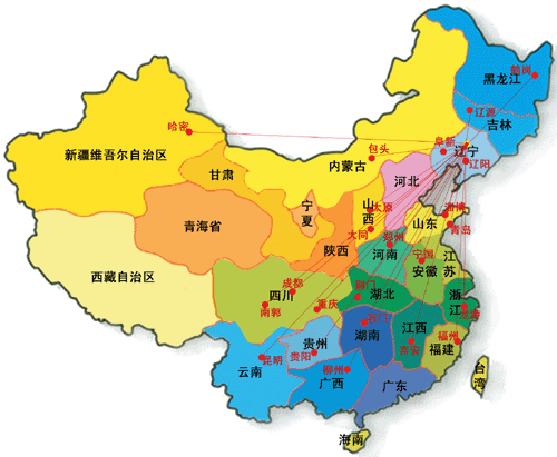 我們的產(chǎn)品在全國18個省,23個市均設有銷售地點,在全國各地形成龐大的銷售網(wǎng)絡。